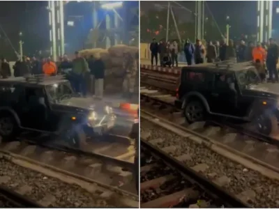 రైలు పట్టాలపై థార్ కారు పరుగులు..ఆ తర్వాత!