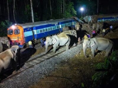 ఏనుగులను ఢీ కొట్టిన రైలు