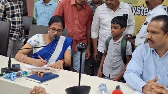 వివరాల్లోకి వెళ్తే.. గుంటూరు ప్రభుత్వ ఆసుపత్రి ఎదుట రాధిక అనే మహిళ టిఫిన్ బండి నడుపుకుంటూ కుటుంబాన్ని పోషించేది. అయితే ఇటీవల రోడ్డు విస్తరణ పనుల కారణంగా టిఫిన్ బండిని అధికారులు తొలగించారు. ఈ నేపథ్యంలో రాధిక కుమారుడు ఎనిమిదేళ్ల యశ్వంత్ సోమవారం కలెక్టర్ ఆఫీసుకు వచ్చాడు. అతన్ని గమనించిన మీడియా ఏమైందని ప్రశ్నించింది.