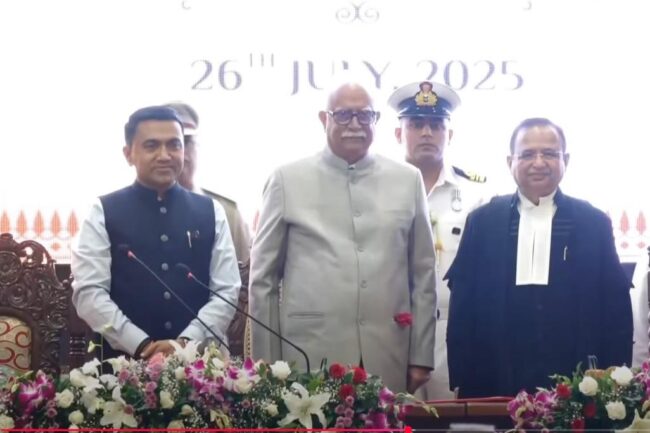 Ashok Gajapathi Raju takes oath as Goa Governor | గోవా గవర్నర్ గా ప్రమాణ స్వీకారం చేశారు పూసపాటి అశోక్ గజపతిరాజు. శనివారం ఉదయం గోవా రాజ్ భవన్ బంగ్లా దర్బార్ హాల్ లో బాంబే హైకోర్టు ప్రధాన న్యాయమూర్తి జస్టిస్ అలోక్ ఆరాధే అశోక్ గజపతిరాజుతో ప్రమాణం చేయించారు.