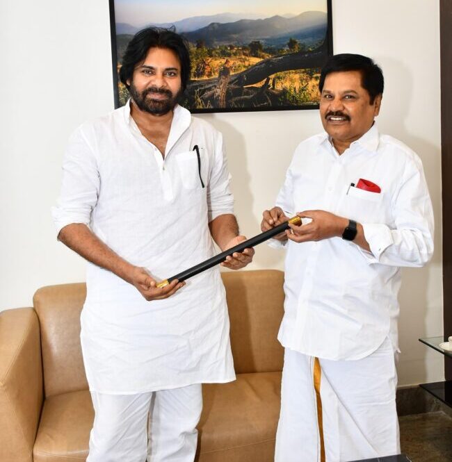 ఈ సందర్భంగా పవన్ కళ్యాణ్ ని సత్కరించి ‘కరుంగాలి కంబు’ను బహుకరించారు. కరుంగాలి కంబుకి ఇరువైపులా పవిత్రమైన పంచలోహాలతో కూడిన క్యాప్స్ ఉంటాయని రాధాకృష్ణన్ వివరించారు.