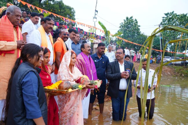 Eatala Rajender News | మేడ్చల్ మల్కాజిగిరి జిల్లా శామీర్ పేట చెరువుదగ్గర నిర్వహించిన ఛాత్ పూజా కార్యక్రమంలో పాల్గొన్నారు ఎంపీ ఈటల రాజేందర్. బీహార్ యూపీ సమాజం దీపావళి పండుగ ఆరు రోజుల తర్వాత.. నాలుగు రోజుల పాటు ఛాత్ పూజ చేసుకుంటారు. సూర్య భగవానుడికి పూజ చేసి శక్తి, ఆశీర్వాదం అందించాలని ప్రజలు పూజలు చేస్తున్నారని ఈటల పేర్కొన్నారు.