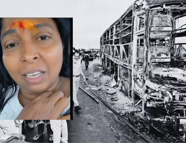 ‘నేను పుట్టపర్తి నుంచి హైదరాబాద్ వెళ్తన్న సమయంలో చిన్నటేకూరు వద్ద నేషనల్ హైవే 44 పై భారీగా ట్రాఫిక్ జామ్ ఏర్పడింది. ఏమైందా అని కారు దిగి చూస్తే ఓ బస్సు పూర్తిగా మంటల్లో కాలిపోతూ కనిపించింది. ఈ ప్రమాదం నుంచి బయటపడిన కొందరు క్షతగాత్రులు రోడ్డుపై కూర్చొని తమవారు బస్సులోనే ఉన్నారు అంటూ రోధిస్తున్నారు. అక్కడే ఉన్న ఇతర వాహనదారులు మాత్రం తమ ఫోన్లో వీడియోలు తీస్తున్నారు. వెంటనే నేను కర్నూలు ఎస్పీ ఇతర అధికారులకు సమాచారం అందించారు. ఆ తర్వాత అగ్నిమాపక సిబ్బంది అక్కడకు చేరుకుంది. కర్నూలు రూరల్ ఎస్సై తన సిబ్బందితో అక్కడికి వచ్చి సహాయక చర్యలు చేపట్టారు. గాయపడిన ఓ ఆరుగురిని మరో వ్యక్తి ప్రైవేట్ కారులో ఆసుపత్రికి తరలించారు. అగ్నిప్రమాదం తర్వాత బస్సులో మాంసపు ముద్దలు కాదు అస్థిపంజరాలే మిగిలాయి. ఆ దృశ్యాలు ఇప్పటికీ నన్ను వెంటాడుతున్నాయి’ అని హేమా రెడ్డి తీవ్ర ఆవేదన వ్యక్తం చేశారు.