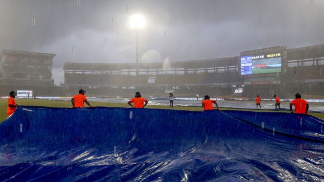 కానీ ఈ మ్యాచ్ కు వర్షం పడే సూచనలు అధికంగా ఉన్నాయి. బంగాళాఖాతంలో అల్పపీడనం కారణంగా 70 శాతం వర్షం కురిసే అవకాశం ఉందని శ్రీలంక వాతావరణ శాఖ వెల్లడించింది. శనివారం సాయంత్రం ఆరు గంటల సమయంలో వర్షం కురిసింది. ఆదివారం మ్యాచ్ ప్రారంభం కంటే ముందు అంటే ఆరు గంటల-7 గంటల సమయంలో భారీ వర్షం, ఆ తర్వాత తేలికపాటి జల్లు కురిసే అవకాశం ఉంది. ఇదే జరిగితే ఓవర్లను భారీగా కుదించి మ్యాచ్ జరపడం లేదా పూర్తిగా మ్యాచ్ ను రద్దు చేసి ఇరు జట్లకు చెరో పాయింట్ ఇచ్చే అవకాశాలు ఉన్నాయి.
