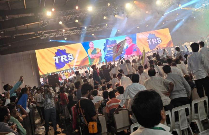 సభా ప్రాంగణంలో తెలంగాణ తల్లితో పాటు అంబేద్కర్, పూలే, జయశంకర్ ఆచార్యుల విగ్రహాలను ఏర్పాటు చేసి తన పార్టీ సిద్ధాంతాన్ని చాటారు.