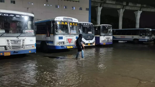 MGBS flooded as Musi swells | మూసీ నదికి భారీ వరద నేపథ్యంలో ఎంబీజీఎస్ ప్రాంగణంలోకి వరద నీరు చేరిన విషయం తెల్సిందే. దీంతో ఎంజీబీఎస్ బస్ స్టేషన్ నుంచి బస్సుల రాకపోకలను టీజీఎస్ఆర్టీసీ తాత్కాలికంగా నిలిపివేసింది.
