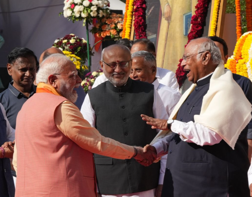 రాజ్యాంగ నిర్మాత డాక్టర్ బి.ఆర్. అంబేద్కర్ 135వ జయంతి సందర్భంగా ఏర్పాటు చేసిన కార్యక్రమంలో ప్రధానమంత్రి నరేంద్ర మోదీ, కాంగ్రెస్ జాతీయ అధ్యక్షుడు మల్లిఖార్జున ఖర్గే పరస్పరం పలకరించుకోవడం అందరి దృష్టిని ఆకర్షించింది.