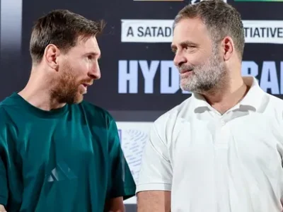 A short conversation between Lionel Messi and LoP Rahul Gandhi at the Hyderabad stadium | అర్జెంటీనా ఫుట్బాల్ లెజెండ్ లియోనెల్ మెస్సి హైదరాబాద్ పర్యటన అద్భుతంగా జరిగింది. ఈ పర్యటనలో... Read More